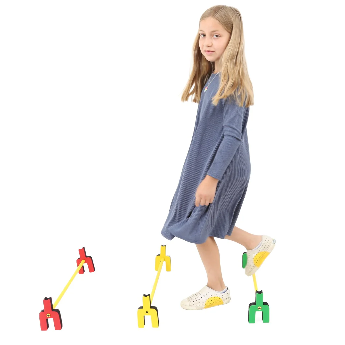 Watch your child overcome hurdles, while having fun! Adjustable and stackable foam hurdles are a versatile tool for gross motor activities. Practice stepping, jumping, hopping and more. Place a rod between two stands to create a low hurdle or add a second rod to the grooves on top to make the hurdle a bit higher. You can even stack the hurdles for a real challenge! Easy to adapt for kids of different ages and abilities. Worried about kids tripping? Rods are made of rubber for a gentler impact. Use during physical education classes or to help develop gross motor skills during physical therapy sessions.