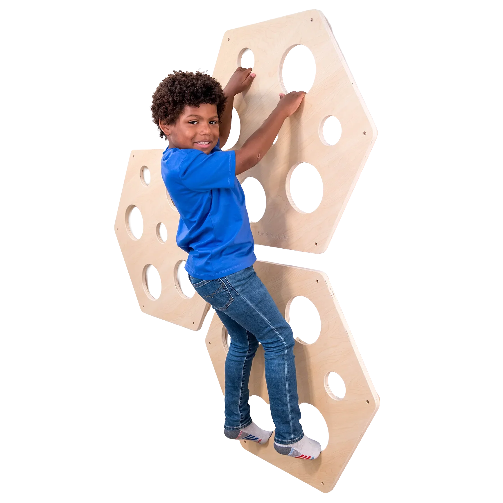 Climb and conquer the un-bee-lievable Honeycomb Climbing Panels! Ascend or traverse the wooden climbing panels and use your motor planning skills to decide where to place each hand and foot. Engage in a full-body workout that sends proprioceptive input to the joints while helping to boost confidence and self-esteem. Constructed of solid wood with a smooth finish, these low-profile panels create a high-end look perfect for the home, sensory space or clinic.